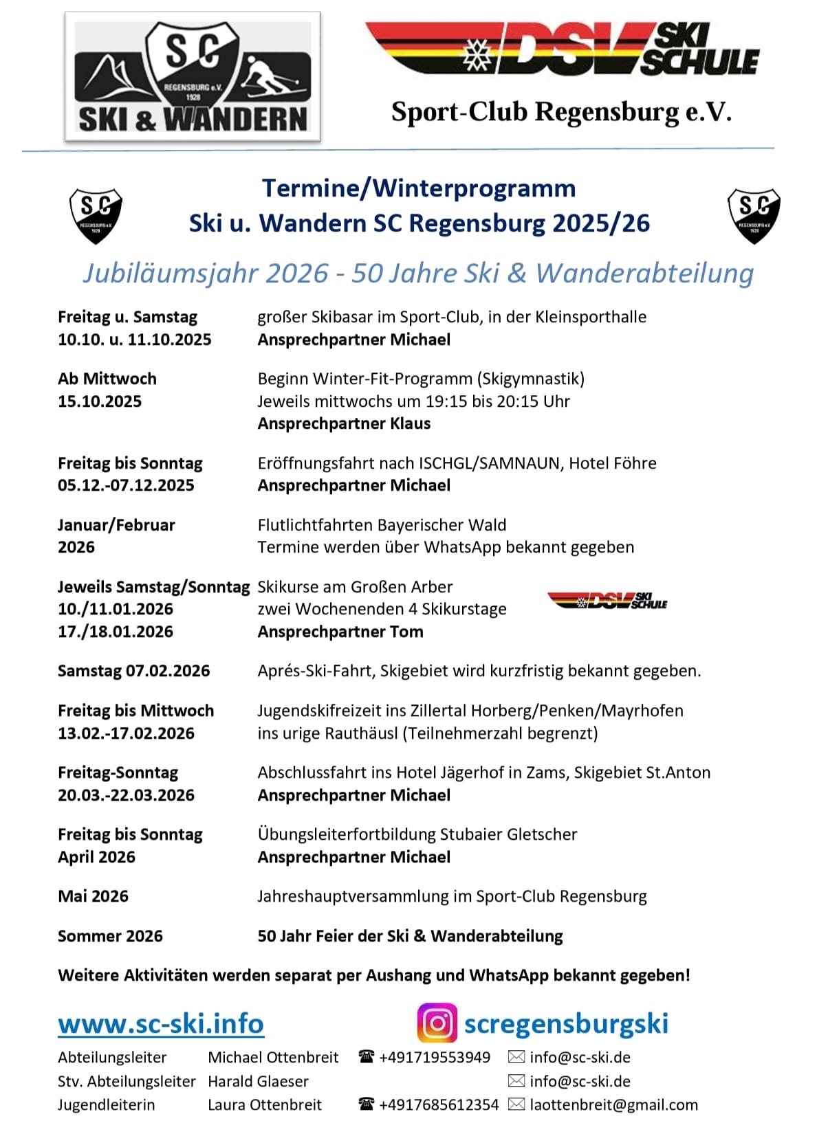 Jubiläumsjahr 2026 – 50 Jahre Ski- & Wanderabteilung SC Regensburg!